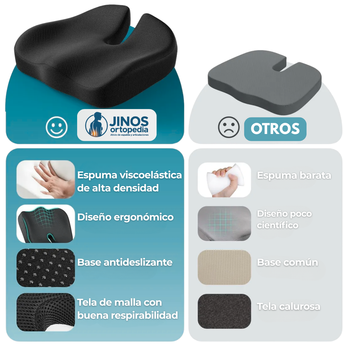 El almohadón ortopédico de Jinos está diseñado para que te sientes mejor, te sientas mejor… y puedas moverte sin dolor durante el día. Ya sea manejando, en la oficina o en casa, este es el apoyo que tu cuerpo necesita.