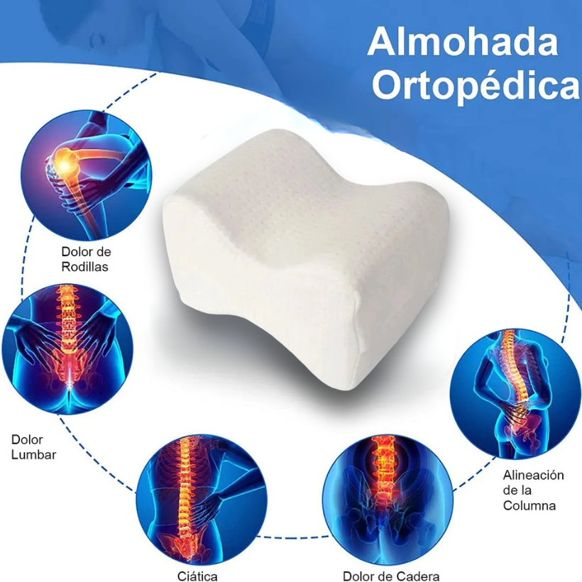 Mantiene la columna alineada cuando dormís de costado y reduce la presión en caderas, rodillas y zona lumbar. Memory foam ergonómico + funda lavable.