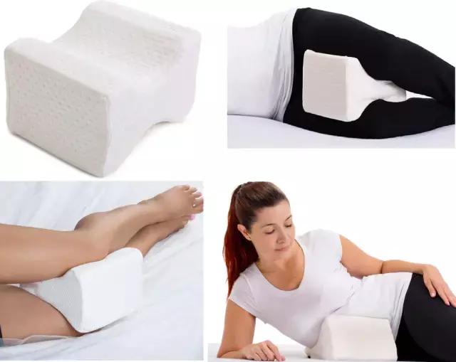 Separador de rodillas viscoelástico (26×20×159 cm) con funda removible. Diseñado para alinear tus piernas, aliviar presión y mejorar tu sueño.